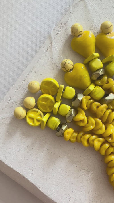 materials: Indonesian glass, ceramic, acrylic & brass beads