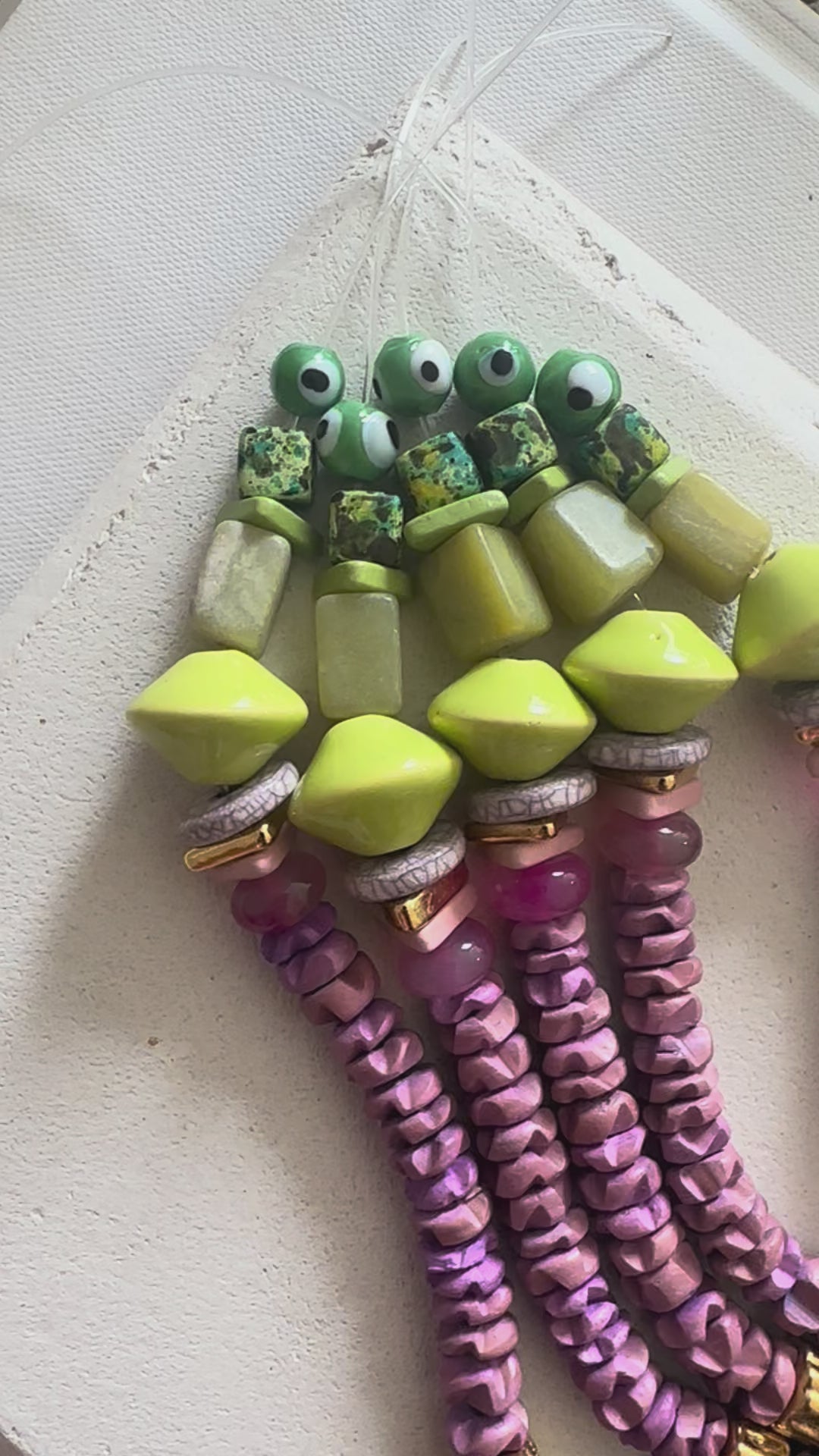 materials: wood, glass + ceramic beads